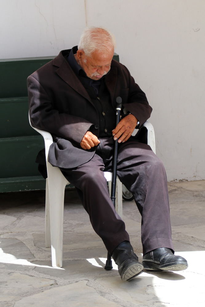 “Dolce vita” würde man es in Italien nennen. Mitten auf dem Dorfplatz von Omodos sitzt ein betagter Mann auf einem Stuhl und hält ein Mittagsschläfchen. Um ihn herum herrscht entspannte Urlaubsstimmung. Zypriotische und griechische Fähnchen wiegen sich im Wind, der hier oben in den Bergen Zyperns etwas kühler ist als unten an der Küste. In den Straßencafes lassen sich Einheimische und Touristen von den kulinarischen Köstlichkeiten des Landes verwöhnen. Eilig scheint es hier niemand zu haben. Es gibt Menschen, die behaupten, der Ort sei nach dem griechischen Wort „modos“, zu Deutsch „nimm und lass dir Zeit“, benannt. Ob daran etwas Wahres ist, kann ich nicht beurteilen. Ich merke nur, dass die kleinen Dörfer im bis knapp 2000 Meter hohen Troodos-Gebirge auch auf mich eine wunderbar entspannende Wirkung haben.